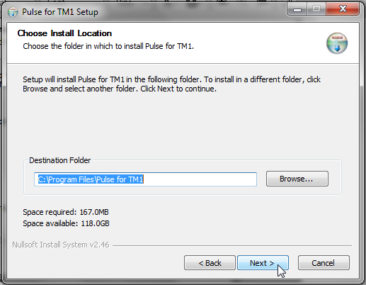 Follow these steps to install a new version of Pulse, when upgrading from an existing installation you should install Pulse in the same location.