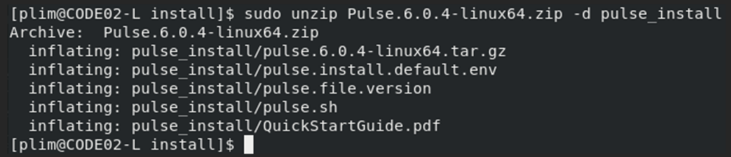 sudo unzip Pulse.6.0.4-linux64.zip -d pulse_install
