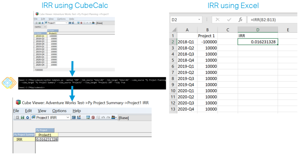 CubeCalc enables you to execute complex finance calculations which are not available natively in TM1 such as the most commonly used IRR (Internal Rate of Return) and NPV (Net Present Value).