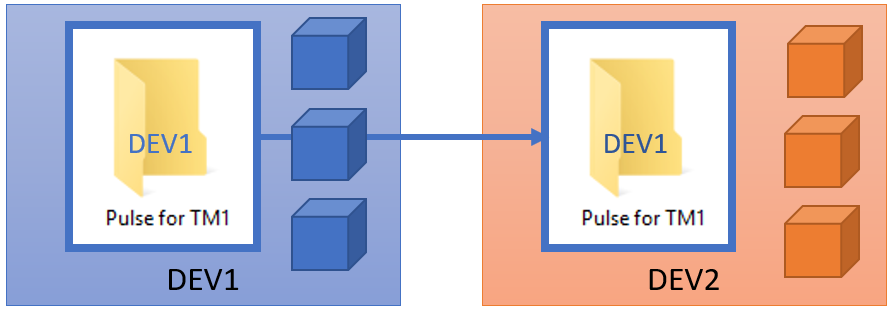 If Pulse installed on DEV1 and DEV2 are two different versions, copy only the backup folders.