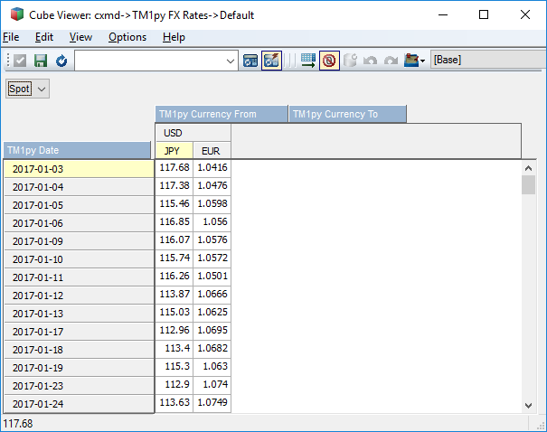 The code above loads the data into the TM1py FX Rates cubes for every day in 2017: