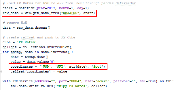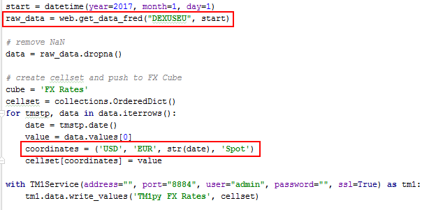 To load data from the FRED, TM1py uses a the pandas-datareader module. This module helps you to extract data from various internaet sources such as Yahou! Finance, Quandl…