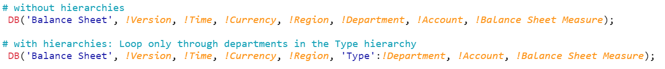 Working with Hierarchies will make your cube rules a bit more complex, because to reference an element in a Hierarchy, you must use the new “Hierarchy-qualified” syntax, as follows: