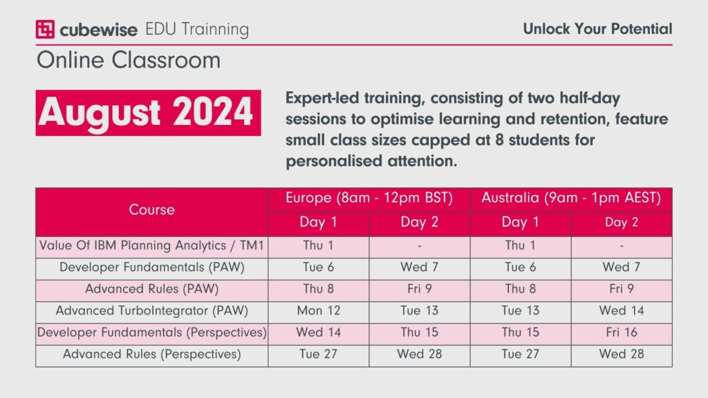 Welcome to the August 2024 Cubewise Educational Newsletter! Whether you’re looking to enhance your skills or explore new tools, we’ve got something for everyone.