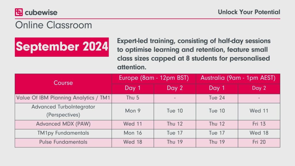 September is packed with opportunities to enhance your skills and knowledge IBM Planning Analytics. Whether you’re looking to join a webinar or attend an in-person event, there’s something for everyone.