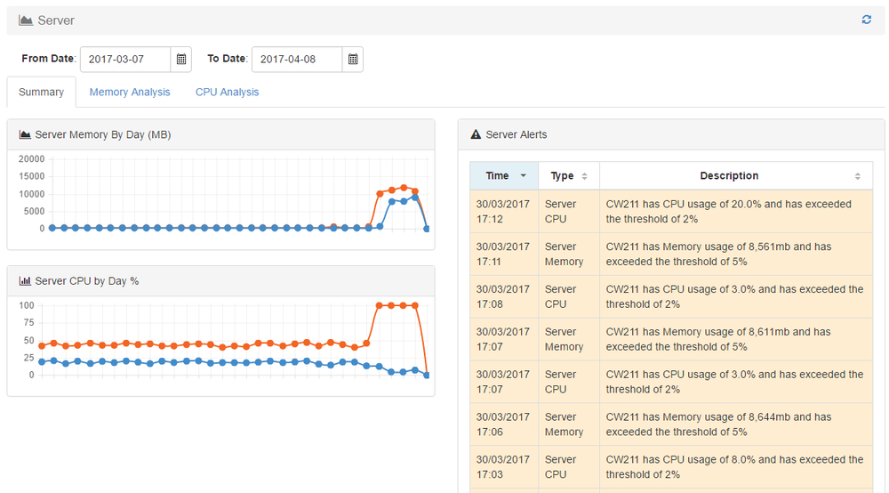 As with many businesses Norgine wants to reduce user downtime and provide the best user experience possible with TM1. For TM1 to work properly there must be adequate disk space for TM1 to be able to write new information and log changes, as well as memory available for users to make calculations. Where a server runs out of disk space TM1 will fail. To monitor this the administrator needs to either check in several places using the task manager and Windows Explorer.