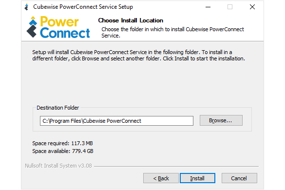 Select the installation location. Default is “C:Program FilesCubewise PowerConnect”.