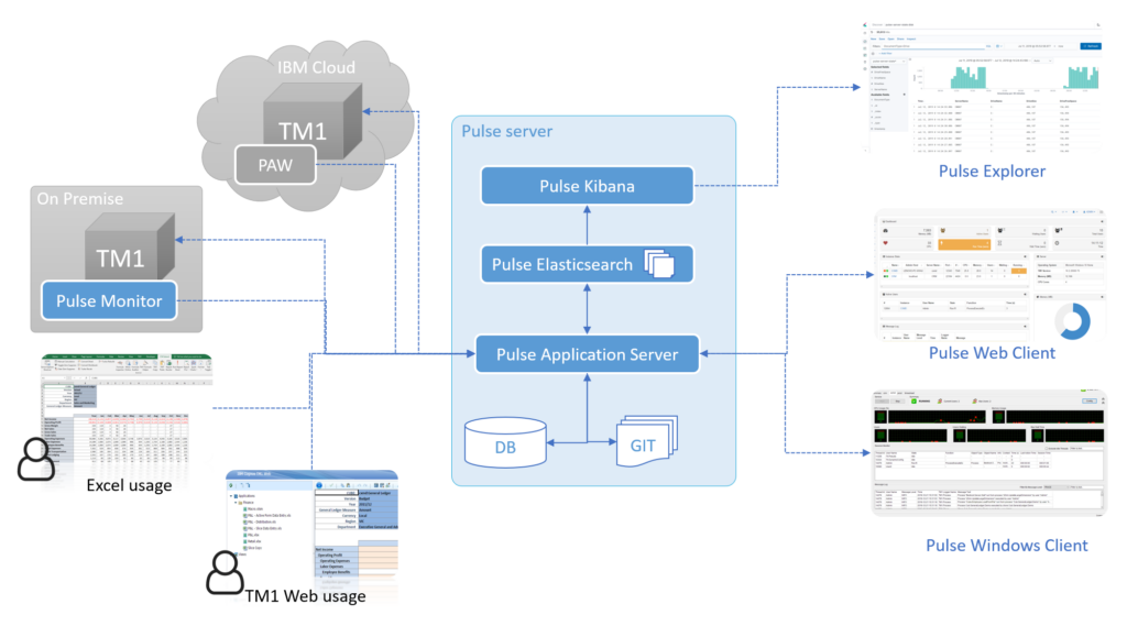 Pulse Application Server: This service manages most of the functionalities that you can find on the Web client (documentation, source control, reports, Pulse security, Workbook and Worksheet history). The Pulse application server connects to TM1 using the TM1 REST API.
