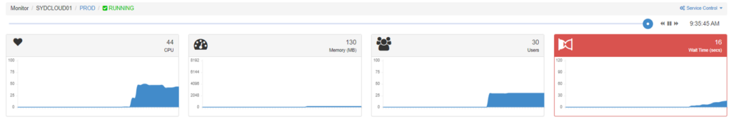In the Monitor, you can see some key KPIs about the instance (CPI, Memory, Users and Wait time):
