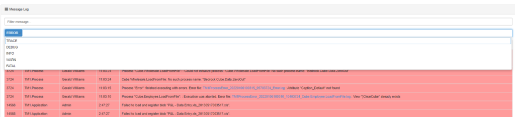 Pulse enables you to filter the list by error type such as showing only the ERROR:
