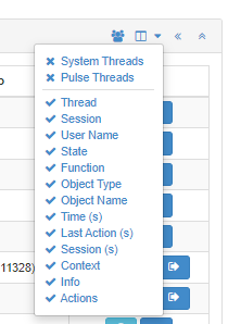 There are more options to filter the system or Pulse threads and also to show/hide columns: