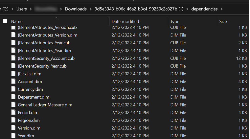 Pulse will create a zip file with all the objects that you need for the migration. Firstly, in the items folder, you will find the main item you want to migrate. For example, below we chose to migrate the employee cube so we will find the .cub containing the data and the rule file (.RUX):