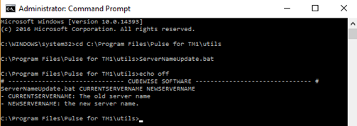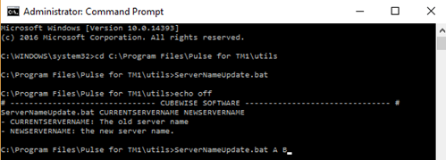 To rename a server name from A to B you’ll need to type ServerNameUpdate.bat A B and then press enter (do not forget to stop the Pulse services).