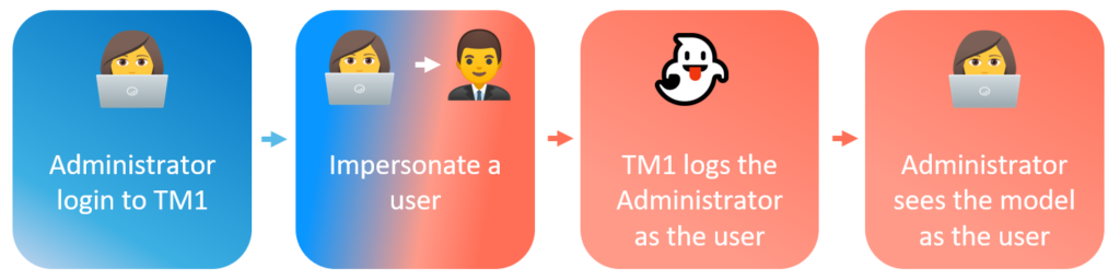 Impersonation is a very powerful feature for TM1 admins as it enables them to login to TM1 as any user with their own credentials.