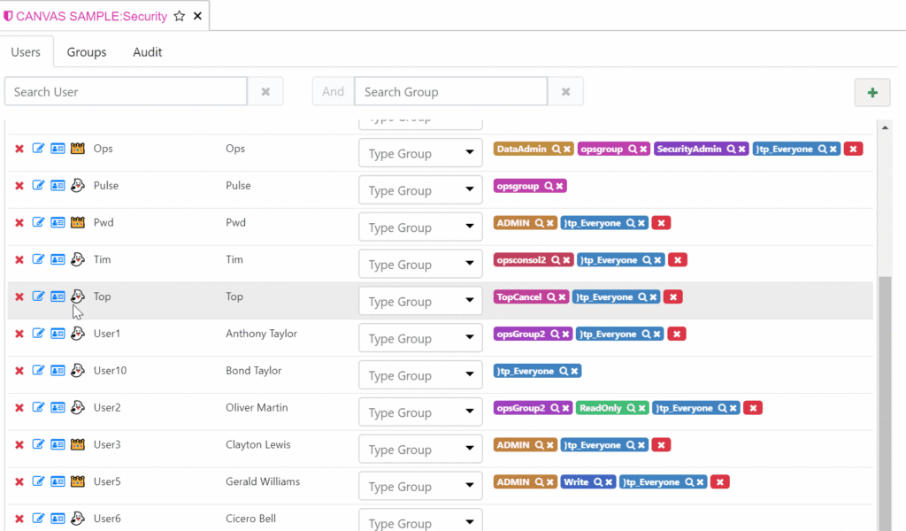 Arc for TM1 has a dedicated editor for the TM1 security, gathering all TM1 security operations into one location.