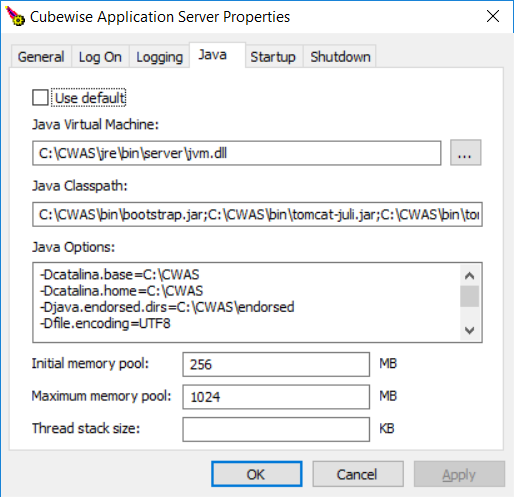 The Java application server (cwas.exe) which runs in the background has a default memory allocation of 1024 MB.