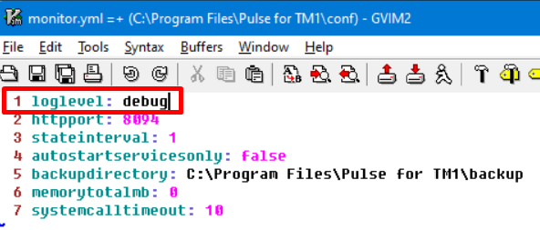 To update the monitor logger in Pulse v5, you need to open the file Pulse for TM1serverpulsesd.config and update minlevel to DEBUG line 22: