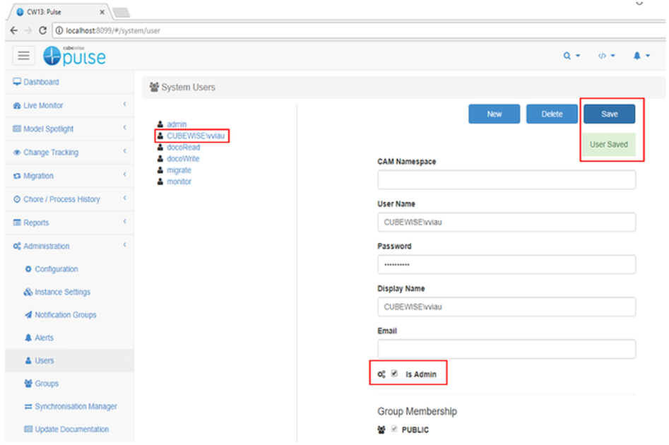 Once Windows Authentication is turned on, Pulse will automatically create users when they navigate to Pulse for the first time. Users will be created with a user of DOMAINuser and will have PUBLIC group privileges.