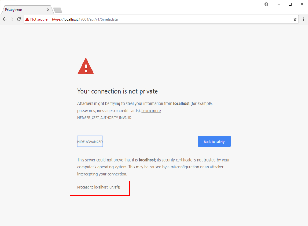 You should be prompted this warning message, click Advanced and then Proceed to localhost (unsafe):