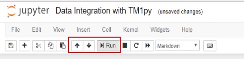 Once opened, you can then use the buttons at the top to navigate through the code’s blocks. The most important button are the Up/Down arrow and the Run button which executes a code block and go to the next one: