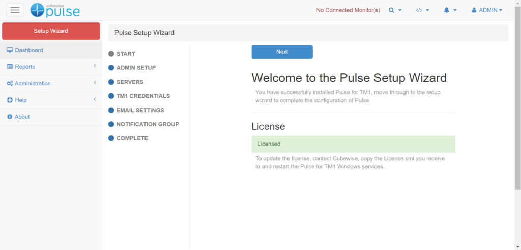 To get Pulse up and running you need to follow the steps of the Setup Wizard.