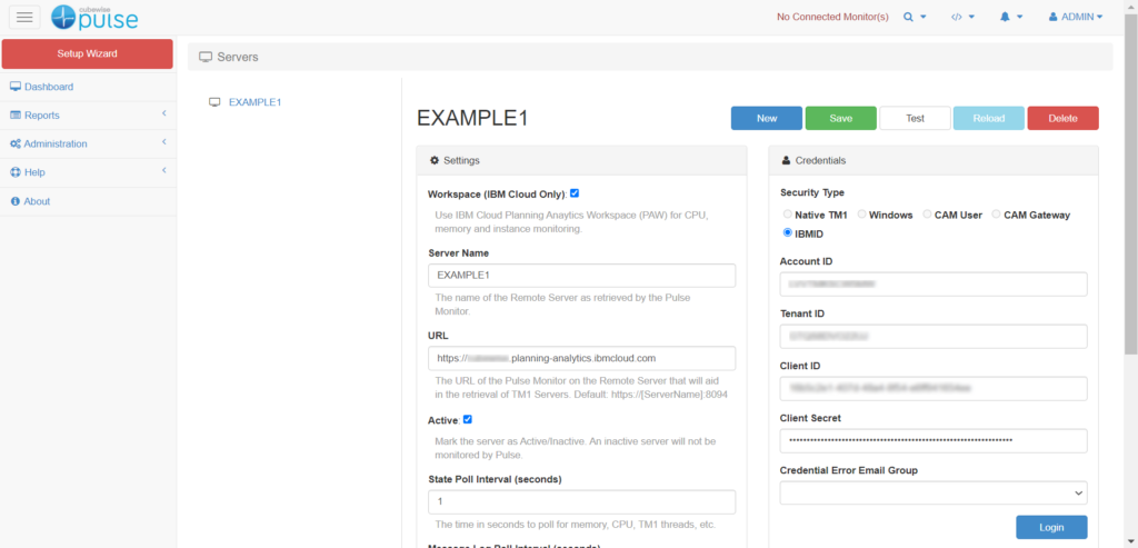 Click Next on the TM1 Credentials. Pulse will use the IBM ID setup on the Servers page to connect to the instances: