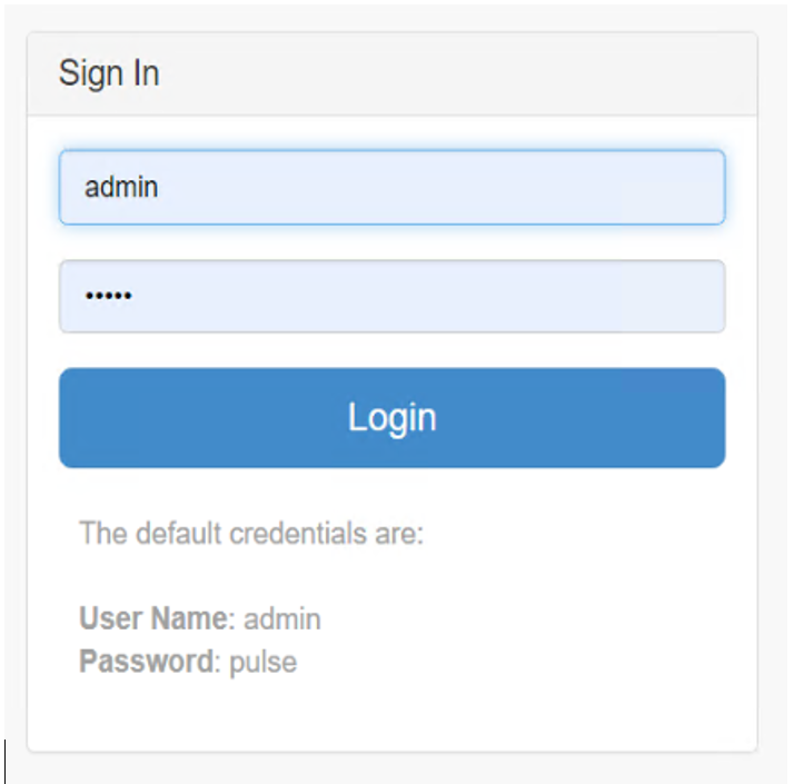 Step 2: Log into Pulse: Login into Pulse using the default credentials displayed on the login page