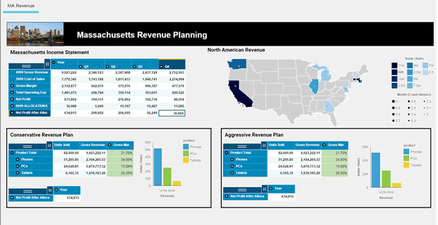 Canvas, on the other hand has adopted a cell-based approach to application building similar to Excel, and TM1 Perspectives.  This means each cell in Canvas has its own DBR formula to retrieve data and to update TM1, which is exactly how TM1 Developers are used to working with TM1. So with Canvas, you can easily combine data from two different cubes into one table or chart as you can in Excel and TM1 Perspectives.