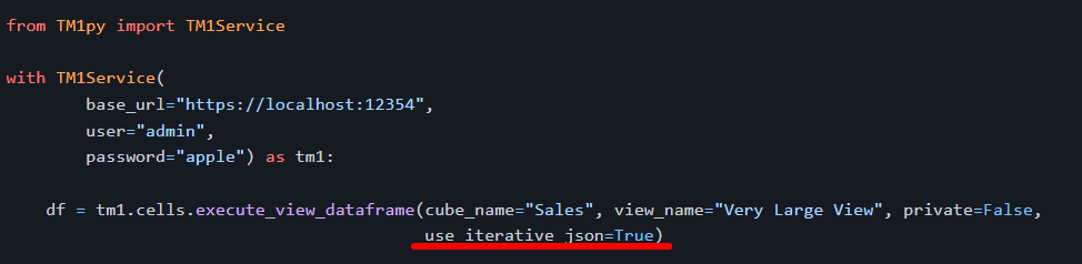 The way TM1py retrieves values has been optimized using iterative JSON parsing. By using this technique, TM1py requires a significantly smaller memory footprint (down to ~ 20% of the original value) at an almost negligible cost of performance (single percentage digit). To turn it on, just add use_iterative_json = True when retrieving values: