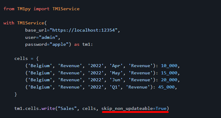 This is very helpful, as it saves the TM1py user from verifying the validity of the cell updates when not working with flawless data sources.