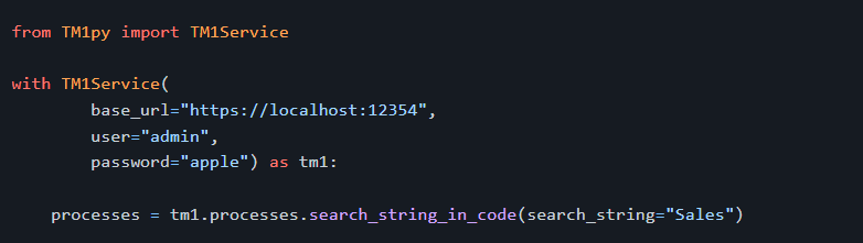 New search functions have been added to each object. For example, use the code below to get all processes containing the string “Sales”: