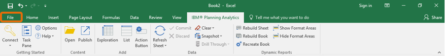 If the ribbon ‘IBM Planning Analytics’ does not appear go to ‘File’ → ‘Options’