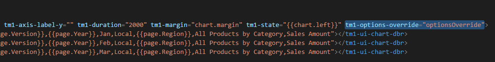 A new attribute has been added into chart, tm1-options-override (you can see an example in sample-advance-chart.left.html):