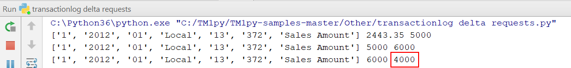 TM1py v1 includes a new sample Transaction log delta requests which will show you how to capture a transaction. This new sample will display the intersection of the cube where the data is updated with the old and new value into the console.