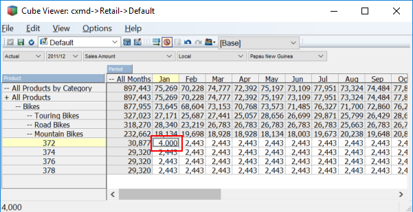 After running the script, TM1py will run in the background and each time a value is updated in the Retail cube, it is going to print into the console. For example, here we input 4000 in the Retail cube: