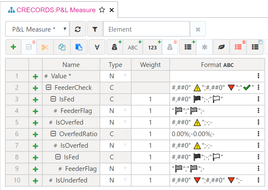 For leaf cells, to work out which cells are actually fed, we are using a dummy element called FeederFlag always equal to 1 and fed from the measure we want to check: