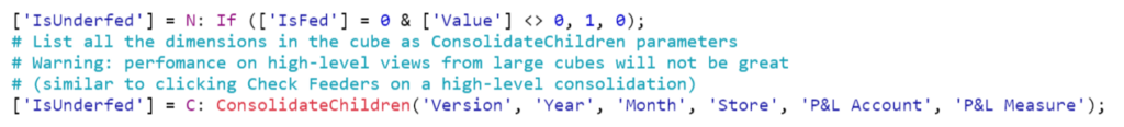 Writing feeders is a big part of a TM1 developer’s job. When all calculated cells with values have a feeder flag , the sum of all Fed cells is calculated and the consolidation is considered fed ✔️️.