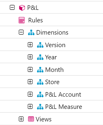 In this example, our cube has 5 dimensions with one measure dimension. We want to check if the value for each account is fed correctly: