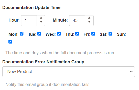 If the documentation is scheduled but did not run successfully, it means that there is an error during the documentation update.