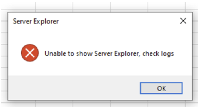 Unable to Show Server Explorer