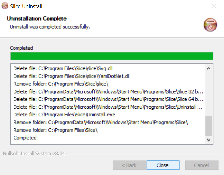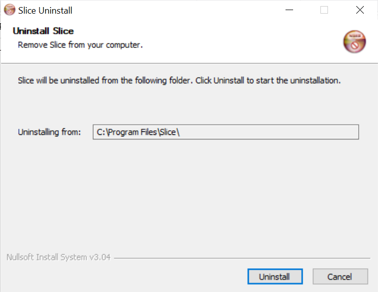 If Slice was installed with the installer, you will find the Uninstall.exe file in the slice installation folder by default C:Program FilesSlice.