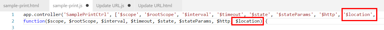 To be able to use $location service in our controller we have to add it as a new argument in our controller: