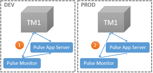 If you have chosen to use a centralized Pulse Application Server to monitor multiple TM1 servers (DEV and PROD), you will have to: