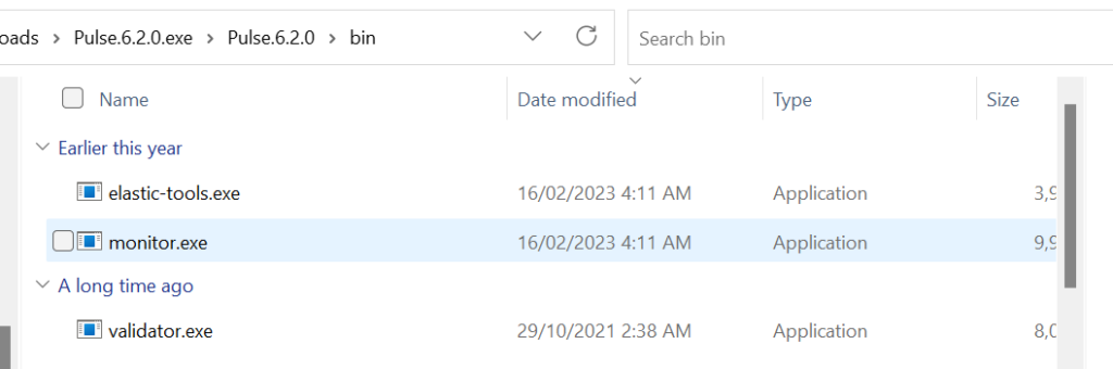 Another way to find the monitor.exe is to unzip the installation file and you will find the monitor.exe inside the bin folder as below: