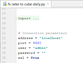 Before running the Load Datafx rates to cube daily.py script you need to update the TM1 credentials: