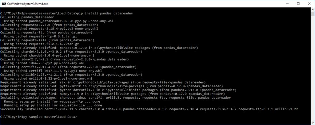 Once pandas has been installed, you need to install the pandas_reader module. To install it, run in a command line: