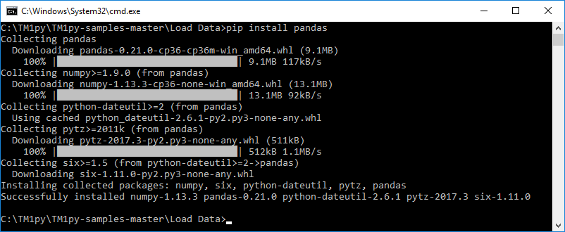 After checking the connectivity with your TM1 instance, open a command line inside the Load Data folder and type the following command: