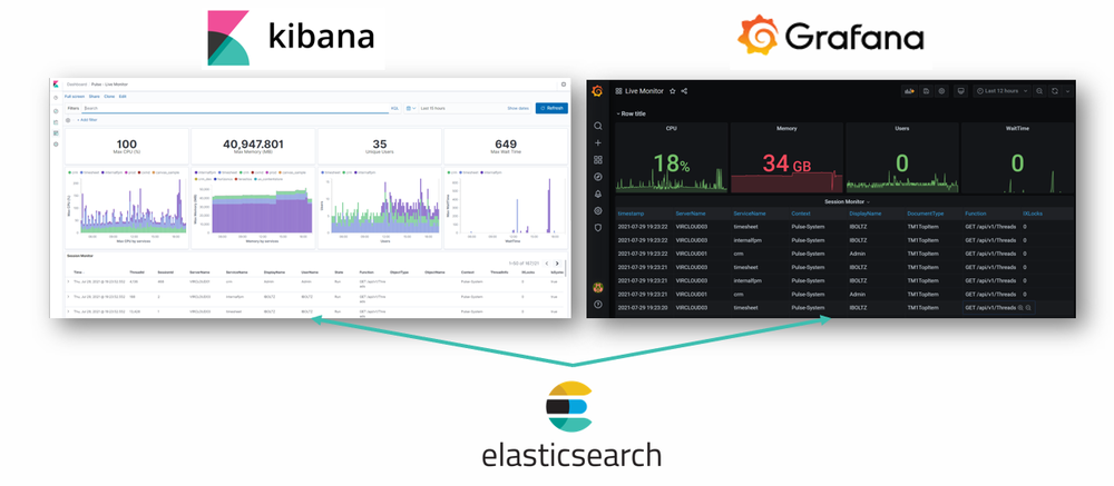 Pulse 6 comes with the open source version of Elasticsearch and Kibana. Elasticsearch is the search engine where Pulse stores the data and Kibana is the visualization tool powering the Pulse Explorer.