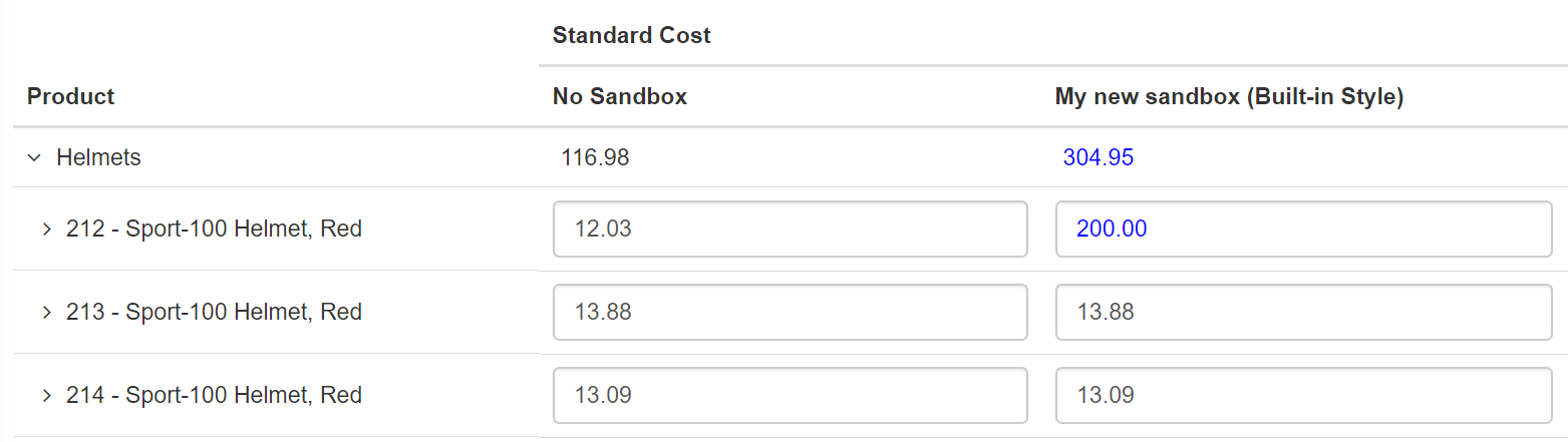 The tm1-ui-dbr directive supports sandboxes. A new component has been added to the samples application to show you how to use sandboxes:
