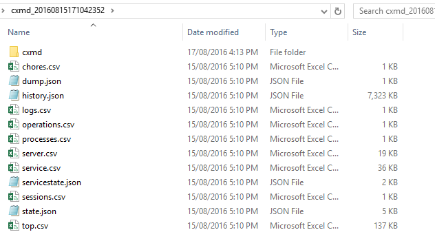 It contains several files with details of the previous 10 min of history of your TM1 server: